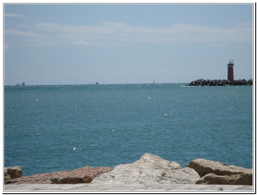 Camping Marina di Venezia 2011 Der Imbiss-Stand "Chiosco al Faro", der rechte Leuchtturm der Hafeneinfahrt