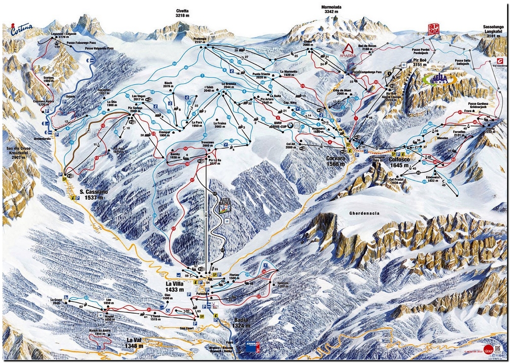 Das Skigebiet ist riesig, mit Einstieg in die Sella Ronda, umgeben von